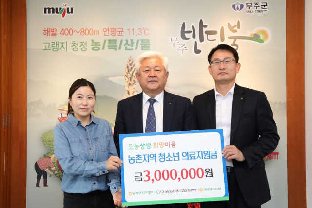 1일 농협 무주군지부가 희망이음 의료비 300만 원을 희귀난치병 치료로 경제적 어려움을 겪고 있는 주민 가정에 지정 기탁했다.