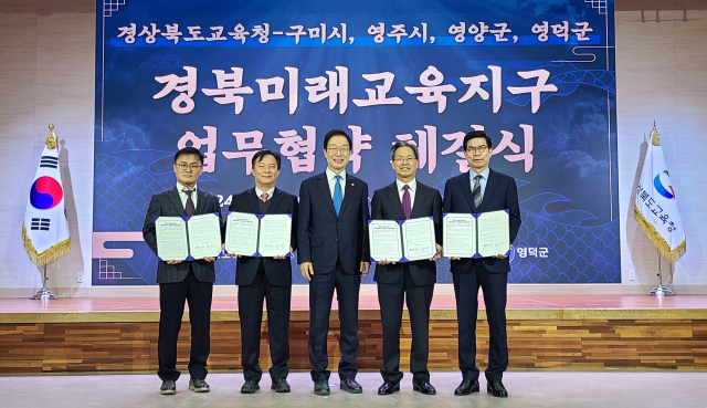 임종식 경북교육감은 19일 도 교육청 웅비관에서 구미시·영주시·영양군·영덕군과 경북미래교육지구 사업추진 업무 협약을 체결했다.