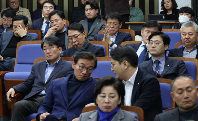 민주당은 27일 오후 국회 본청에서 의원총회를 진행했다. 의총 주요 안건은 선거구 획정안 관련 여당과의 협상 과정 보고 등이었으나 공천 문제로 25여명의 의원 발언이 이어지는 등 '성토장'을 방불케 했다.