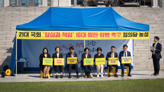 정의당은 이런 내용의 10대 입법을 요구하며 21대 국회 임기가 끝나는 오는 29일까지 국회 안에서 천막 농성을 이어갈 계획이다.