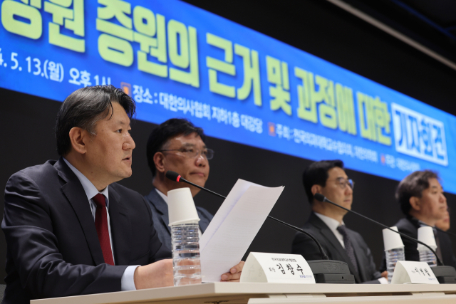 의대교수 단체인 전국의과대학교수협의회(전의교협)와 대한의사협회(의협), 대한의학회 등 의사단체가 13일 기자회견을 열어 정부가 법원에 제출한 자료를 분석한 결과 의대 증원의 과학적 근거가 없었다고 주장했다.