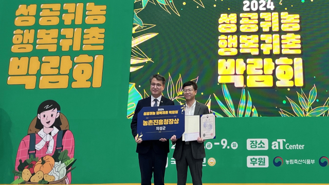 경북 의성군이 서울AT센터서 열린 ‘2024 성공귀농 행복귀촌 박람회’서 귀농·귀촌 우수지자체 농촌진흥청장상을 수상했다.