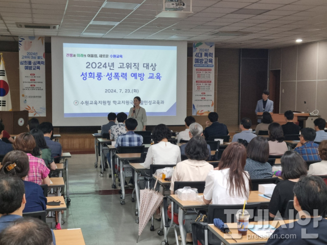 경기 수원교육지원청은 23일 ‘2024년 고위직 대상 성희롱·성폭력 예방 교육’을 실시했다.