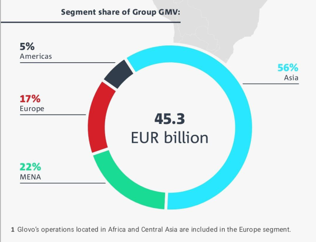 2021년 DH의 총 GMV는 325억1890만 유로. 아시아 지역의 GMV가 210억6450만 유로로 3분의 2를 차지했다.