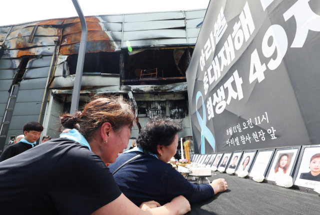 아리셀 화재 참사 유족들이 가족이 떠난 사고 현장에서 49재를 치렀다.