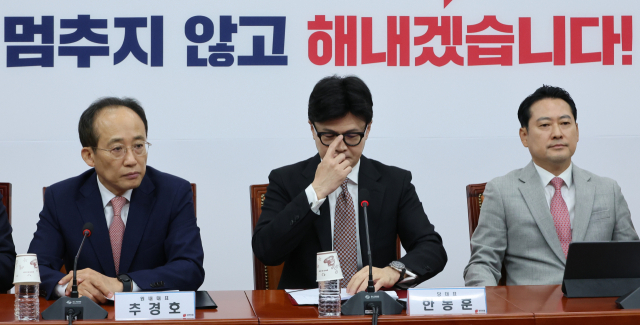 앞서 추 원내대표의 발언 직전엔 한 대표가 명태균 녹취 파동과 관련 "국민들께 대단히 죄송스러운 일"이라며 대국민 사과를 요구하는 등 윤 대통령을 직격했는데, 이어 당 지도부 내 친윤계 좌장 격인 추 원내대표도 같은 사안 관련한 유감을 표명한 것이다.