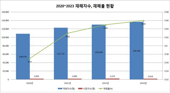 재해자수와 재해율은 '중대재해처벌법' 제정 이후에도 계속 증가 중