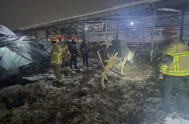 같은 날 오후 10시54분께 입장면 용정리 한 축사도 지붕이 내려 앉아 젖소 3마리가 폐사했다.