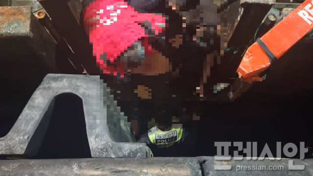 현장에 도착한 해경은 지체하지 않고 직접 입수하여 사다리를 이용해 익수자를 무사히 구조했다.