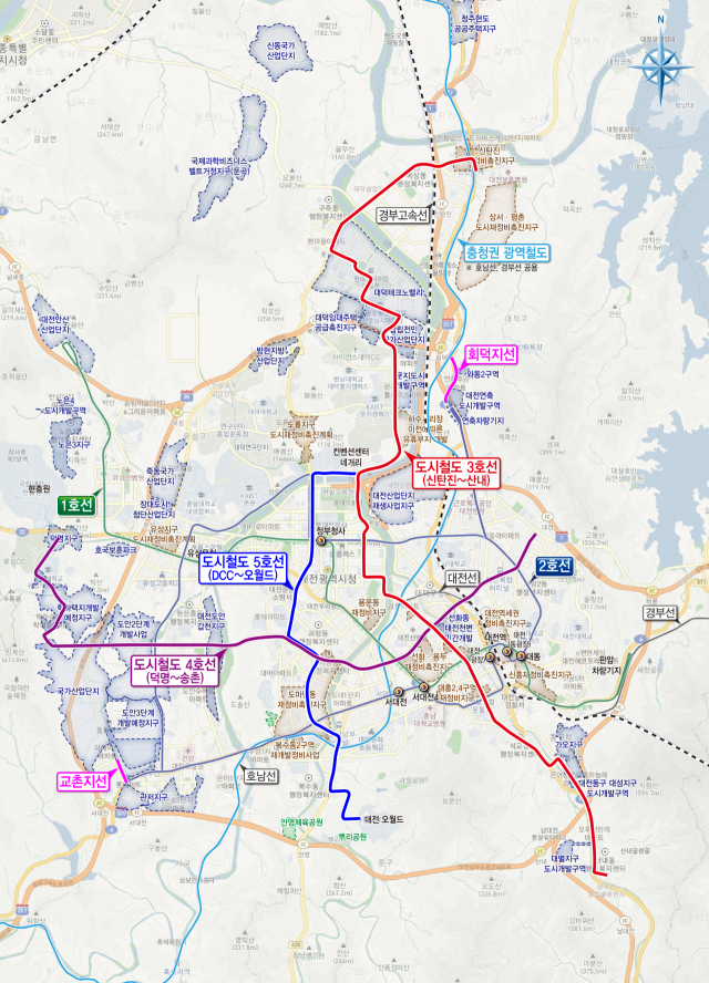 계획안에 따르면 3호선은 대덕구 신탄진역에서 중구 산내동까지 남북을 잇는 노선으로 총 연장 29.2㎞, 4호선은 유성구 덕명지구에서 동구 송촌까지 동서로 연결되는 19.0㎞, 5호선은 유성구 컨벤션센터네거리에서 중구 오월드까지 13.2㎞로 도심을 관통하게 된다.