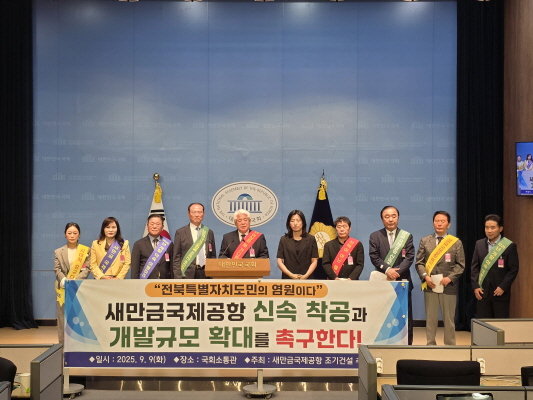 같은 날 도내 209개 경제·사회·체육·문화 단체로 구성된 '새만금국제공항 조기건설 추진연합'(수석위원장 김정태)도 국회 소통관에서 기자회견을 열고 조속한 착공을 요구했다.