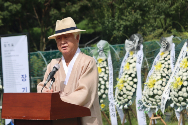 20일 고(故) 장기표 선생 서거 1주기 추도식에서 참석자들이 '장기표 정신'의 계승을 다짐했다.