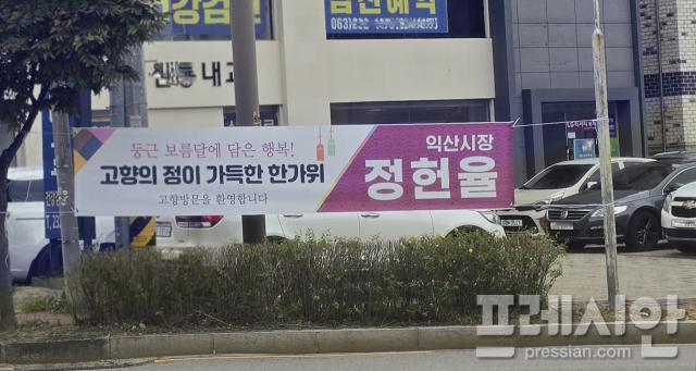 ▲24일, 추석황금연휴를 앞두고 각 언론사에서는 내년 지방선거출마자들을 대상으로 여론조사를 실시하고 있다. 출마 예정자들은 이같은 여론조사 결과가 명절을 맞아 친인척이 모이는 추석 밥상머리에서 주요한 대화거리로 작용할 것으로 여기면서 SNS를 통해 02번으로 걸려 오는 전화를 꼭 받아 달라며 ARS조사에서 자신을 선택해 달라는 게시글을 경쟁적으로 올리고 있다. 그래서 일까? 내년 전북자치도지사 선거에 출마할 것으로 알려진 정헌율 익산시장은 이날, 전주시내를 비롯해 도내 14개 시군 전역에 귀성을 환영하는 플래카드를 게첨했다. 이를 본 전주시민들은 "익산시장에 왜 전주시내에 저런 플래카드를 걸었을까?"의아해 했다. ⓒ프레시안