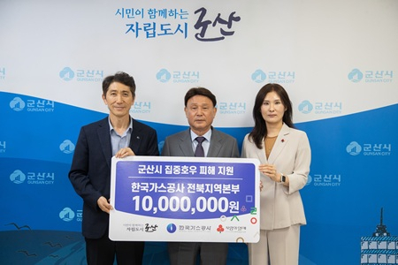 다음으로 한국가스공사 전북지역본부는 24일 최근 집중호우로 피해를 입은 군산시 저소득 주민들을 위해 성금 1000만 원을 시에 기탁했다.