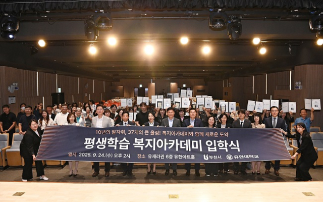 경기 부천시는 지난 24일 유한대학교에서 ‘부천시·유한대학교 복지아카데미’ 입학식과 업무협약식을 가졌다.