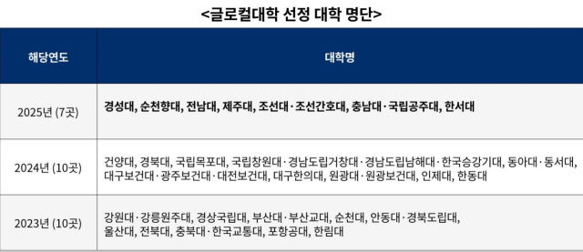 ▲교육부가 공개한 글로컬대학 선정 대학 명단. <자료=교육부> ⓒ프레시안