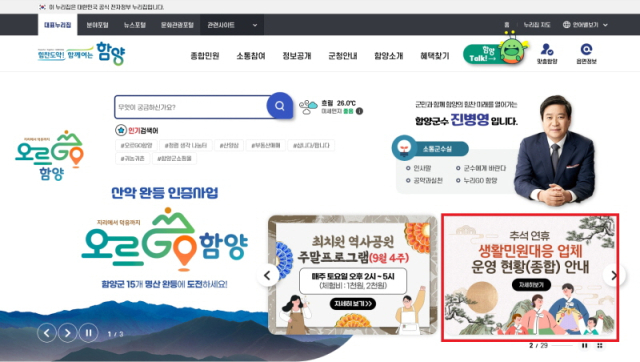 경남 함양군은 다가오는 추석 명절을 맞아 군민과 귀성객이 안전하고 편안한 명절을 보낼 수 있도록 10월 9일까지 '추석 명절 종합대책'을 추진한다고 29일 밝혔다.