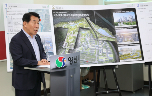 나동연 양산시장이 29일 ‘증산지구 도시개발사업’ 추진상황을 발표하고 미래 청사진을 제시했다.