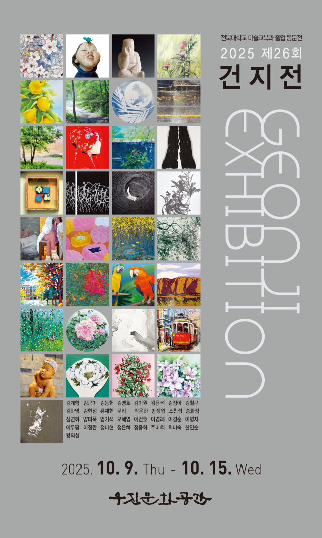 오는 10월 9일부터 15일까지 전주 우진문화공간 1층 갤러리에서 열리는 이번 전시에는 전국 각지에서 활동하는 동문 작가 33명이 참여해 서양화, 한국화, 조소, 판화, 도자공예 등 다양한 장르 작품을 선보인다.