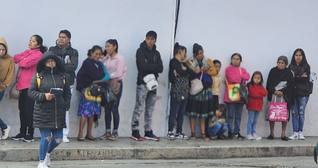 ▲ 보조금을 타기 위해 새벽부터 은행 앞에 긴 줄을 선 마야 원주민들 ⓒ손호철