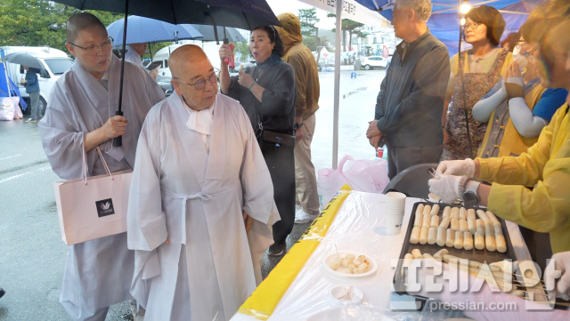 현장에는 포항지역 사찰들이 참여해 오색비빔밥, 붕어빵, 달고나 등 다양한 먹거리와 단주 만들기, 전통유과, 머그컵 제작 체험 부스를 운영했다.