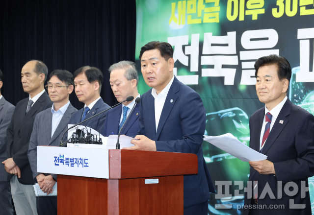 ▲김관영 전북도지사가 전북도청 브리핑룸에서 피지컬AI 산업 관련 추진 계획을 설명하고 있다. (2025.7.8) ⓒ전북도
