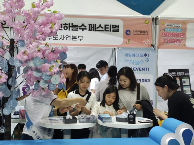 현장에서는 ‘인천 하늘수 퀴즈’, ‘하늘수 물병 세우기’ 등 체험행사와 포토존 등이 운영돼 시민들의 큰 호응을 얻었다.