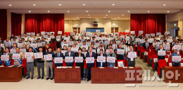 13일 군에 따르면 '진도고속철도추진위원회'가 주관한 이번 결의대회에는 추진위원들을 비롯해 기관 단체장·군민 등 약 300명이 군청 대회의실에 참석해 '진도 고속철도의 국가계획 반영'을 향한 강한 의지를 모았다.