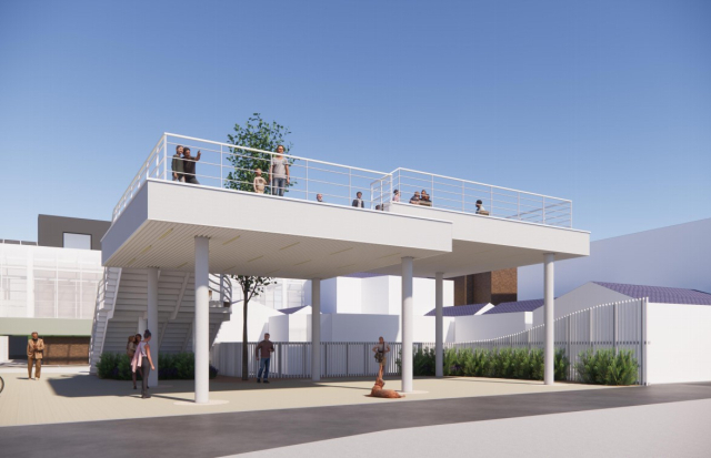 그늘쉼터인 ‘쉼마루’는 그늘 쉼터와 수목을 활용한 휴식공간을 ‘어울림마당’에서는 주변을 조망하며 시장먹거리를 즐길 수 있는 전망쉼터로 활용된다.