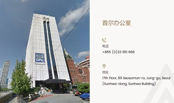 16일 국회 행정안전위원회 소속 국민의힘 서범수 의원실에 따르면 프린스그룹의 부동산 계열사 '프린스 리얼이스테이트 그룹'이 홈페이지에 서울 중구 순화동에 '한국사무소'를 두고 있다고 명시했다. 다만 기재된 연락처는 캄보디아 국가번호였다.