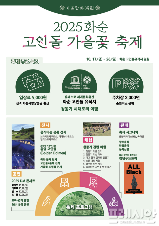 전남 화순군은 '2025 화순 고인돌 가을꽃 축제'에서 통합문화이용권(문화누리카드) 사용이 가능하도록 임시 가맹점 46개소를 운영 중이라고 19일 밝혔다.