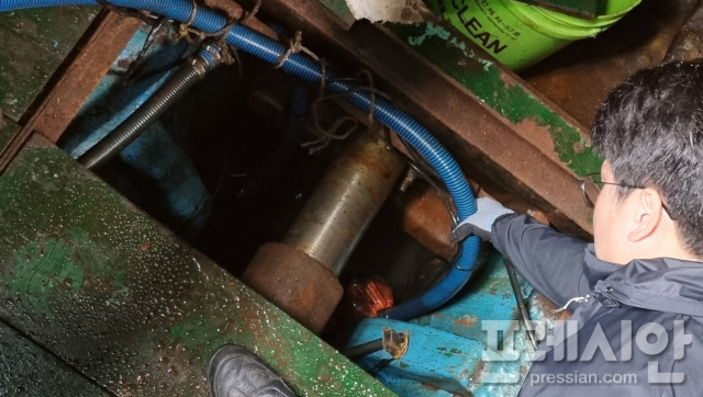 당시 해경은 국동항 해상에 기름냄새가 심하게 난다는 신고를 접수하고 인근 계류선박을 조사하던 중 A선박의 잠수펌프 사용 사실을 인지했다.