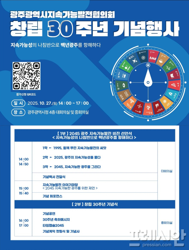 정현윤 기후환경국장은 "광주지속가능발전협의회 30주년 기념행사는 광주시가 지속가능한 미래를 향한 의지를 다지는 중요한 자리"라며 "많은 시민들이 관심을 갖고 적극 참여해 주길 바란다"고 말했다.