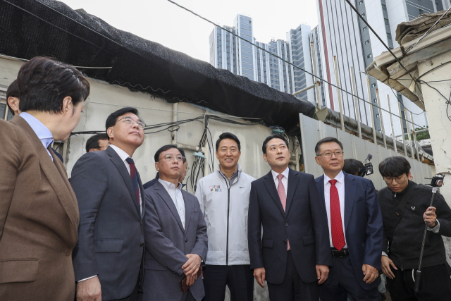 장동혁 대표, 송 원내대표 등 국민의힘 지도부는 이날 서울 노원구 상계동의 재정비 촉진 구역을 찾아 '부동산 현장 대책회의'를 가졌다. 정부의 부동산 규제 기조를 비판하고, 재개발·재건축 활성화를 촉구하는 취지의 행사다. 오세훈 서울시장이 동행했다.
