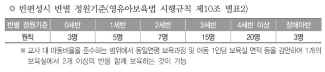 이에, 교사들의 실제 현장 의견을 반영해 연령별 적정 학급당 영·유아 수를 다음과 같이 제안하고 싶다.