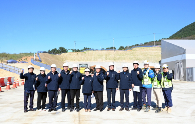 ▲남해~여수 해저터널 건설사업 현장 점검하고 기념촬영하고 있다. ⓒ남해군