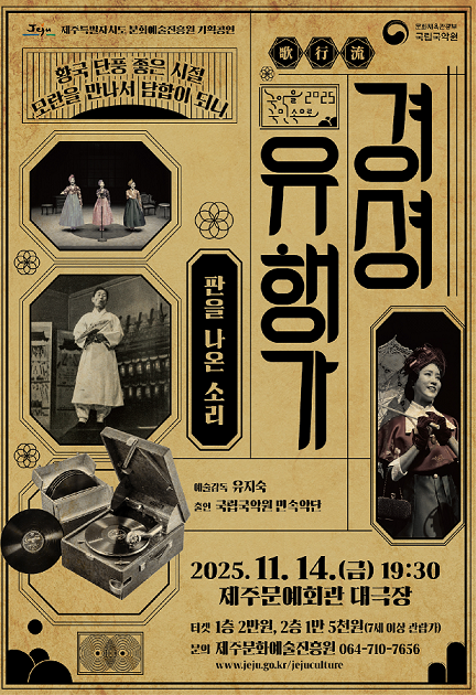 이번 공연은 국립국악원이 주관하는 ‘2025 국악을 국민 속으로’ 공모사업에 제주문화예술진흥원이 선정돼 성사됐다. 1910~1920년대 유성기 음반에 수록된 유행가를 복원해 구성한 무대가 공개된다.