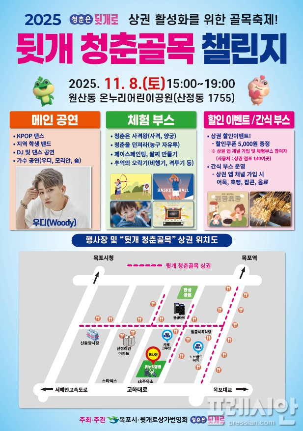 목포시는 뒷개로상가번영회(회장 박성조)와 공동으로 '2025 뒷개 청춘골목 챌린지'를 오는 8일 원산동 온누리어린이공원 일원에서 개최한다.