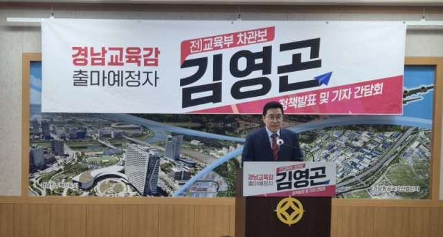 내년 경남교육감 선거 출마를 준비 중인 김영곤 전 교육부 차관보가 6일 진주시청 브리핑룸에서 '진주 교육비전 선포 및 정책 간담회'를 열고 진주를 중심으로 한 경남교육의 새로운 도약 방향을 제시했다.