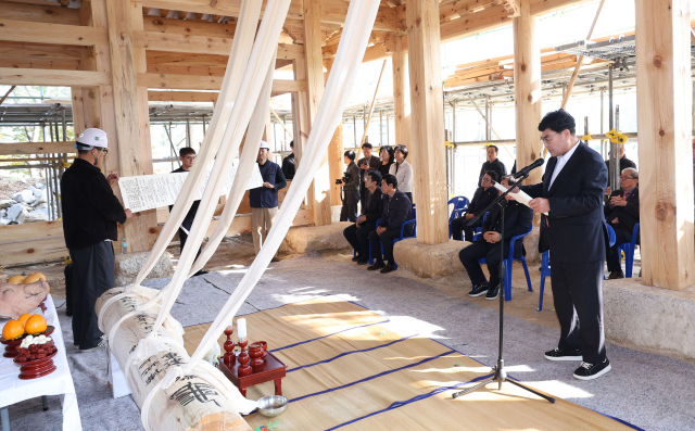 박상수 시장이 상량문을 낭독하며 삼척 시민의 안녕과 복원사업의 성공적인 완공을 기원했다.