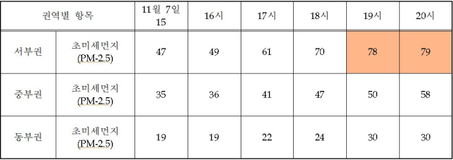 전북특별자치도 보건환경연구원따르면 초미세먼지(PM-2.5) 주의보는 시간 당 평균 농도가 75 μg/m3 이상 2시간 지속되면 발령되는데, 서부권역이 7일 20시 현재 79 μg/m3으로 측정돼 주의보를 발령했다.