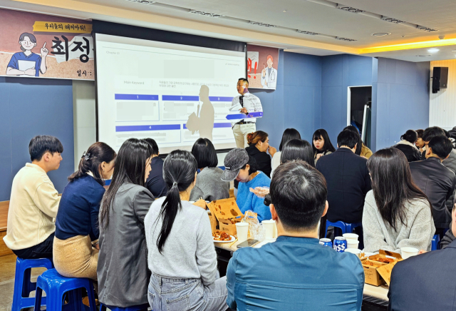 영경의료재단 전주병원과 호성전주병원이 조직문화 개선 설문 이후, 소통과 공감의 장 마련해 인공신장센터 대회의실에서 임직원 100여 명이 참석한 가운데 '최정웅 이사장과의 치킨챗' 행사를 열었다.