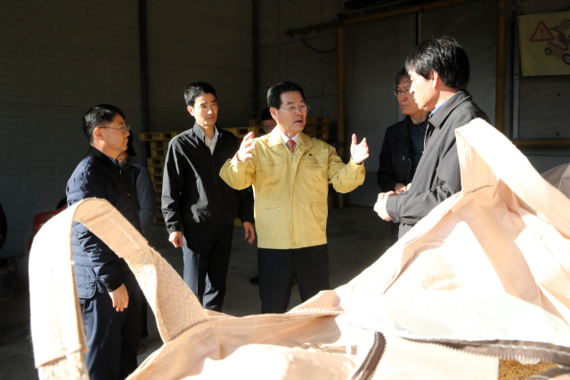 권익현 부안군수는 10일 오전 하서면 대교농협 창고에서 진행 중인 2025년산 공공비축미 수매 현장을 방문해 농가와 관계자들을 격려했다.