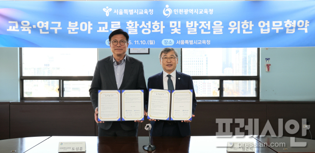 인천광역시교육청은 10일 서울특별시교육청과 함께 ‘읽걷쓰’ 교육 및 심층 쟁점 독서토론 기반의 교육 혁신 및 교육·연구 교류 활성화를 위한 업무협약을 체결했다.