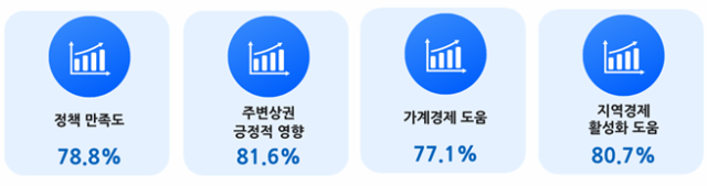 정책 만족도 조사에서는 시민의 84.6%가 만족한다고 답했으며, 85%가 지역경제 활성화에 도움이 됐다고 응답했다. 소상공인 역시 78.8%가 정책에 만족했고, 81.6%가 상권 활성화 효과를 체감한 것으로 나타났다.