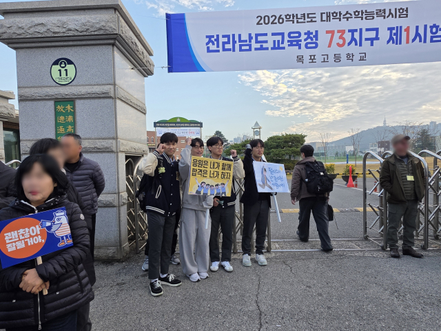 13일 오전 7시 2026학년도 대학수학능력시험 전남도교육청 73지구 제1시험장인 목포고 앞에는 수험생 응원에 나선 학생과 교사들로 북적이기 시작했다.