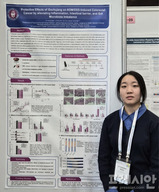 백진영 연구원은 “학부 때부터 전통 발효장류의 생리활성 연구에 꾸준히 참여해 왔는데, 이번 수상으로 그동안의 노력이 인정받은 것 같아 큰 보람을 느낀다”며 “대학원에 진학해 전통 장류의 새로운 기능성과 관련 분자대사영양학적 기전을 더욱 깊이 공부하고 싶다”고 말했다.