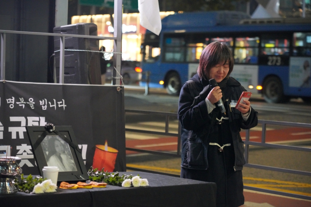 첫 추모 발언에 나선 김희정 집행위원장은 첫 문장도 채 마무리 못하고 울음이 북받쳐 말을 잠시 쉬었다. 그는 "죽어도 되는 노동자, 대체 가능한 노동력, 이것이 이주노동자의 다른 이름이고 뚜안의 이름이었다"며 "이주노동자의 죽음을 밟고 성장하는 한국 자본주의"라고 소리쳤다.