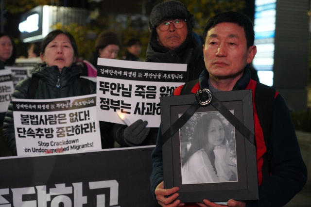 랄라(필명) 다산인권센터 상임활동가도 발언대에 나와 "정부는 미등록, 불법이니 단속해야 한다는데, 불법과 합법의 경계 그 기준을 정한 건 누구인가"라며 "그 기준이 이리 많은 사람의 목숨을 앗아갔는데도 반성 없이 단속추방을 매번 반복하며 문제 상황을 지속시키는 정부의 방향은 옳은가"라고 물었다.