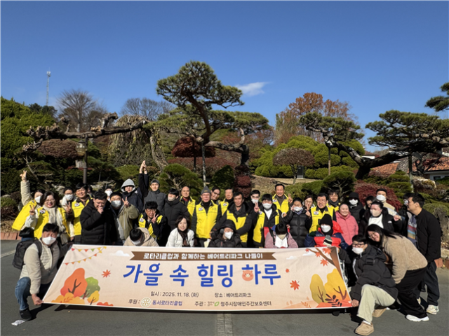 이 행사에서 동서로타리클럽은 청주시장애인주간보호센터를 이용하는 중증 장애인 20여 명과 단풍이 절정에 이른 세종시 베어트리파크를 방문, 자연 속에서 심신의 휴식을 누리는 시간을 가졌다.